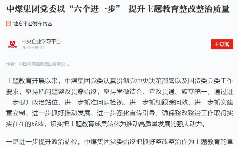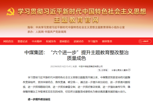 【中央主題教育官網(wǎng)】中煤集團:“六個進一步”提升主...