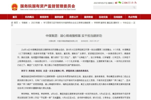 【國資委網(wǎng)站】中煤集團:凝心鑄魂強根基 實干擔當建...