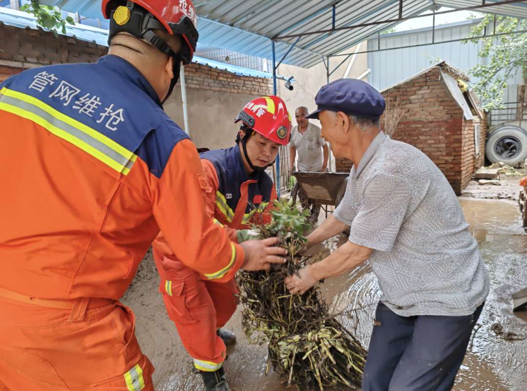 國家管網(wǎng)集團蘭州維搶修中心搶險隊伍抵達后,迅速架設應急照明設備,點亮夜間救援通道;組織力量深入受災區(qū)域,全力幫助群眾清理淤泥,暢通道路。